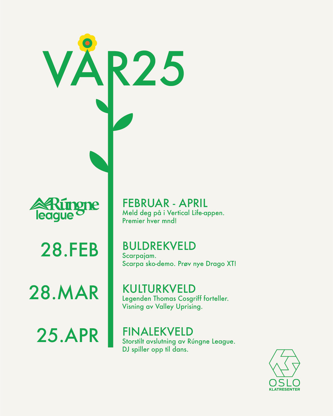 Some examples of graphic design work I've done for Oslo Klatresenter; for both print and social media.